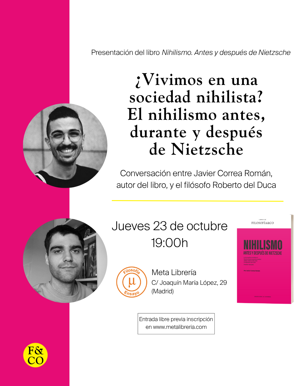 Javier Correa Román. Graduado en Filosofía por la Universidad Nacional a Distancia (UNED) y doctorando en Filosofía por la Universidad Autónoma de Madrid (UAM). Cofundador del Colectivo Mentes Inquietas y redactor de FILOSOFÍA&CO, ha sido profesor de la Universidad Rey Juan Carlos (Madrid). Entre sus libros publicados encontramos los escritos junto a Myriam Rodríguez del Real: Y pensar ¿para cuándo? Filosofía de jóvenes para jóvenes (2019), Mentes Inquietas. Contrarrefranes y cultura popular (2020) o Micropolítica del amor. Deseo, capitalismo y patriarcado (2024); pero, más que escribir, lo que le gusta es leer. Ah, y los pájaros y las flores (y, en general, la primavera).